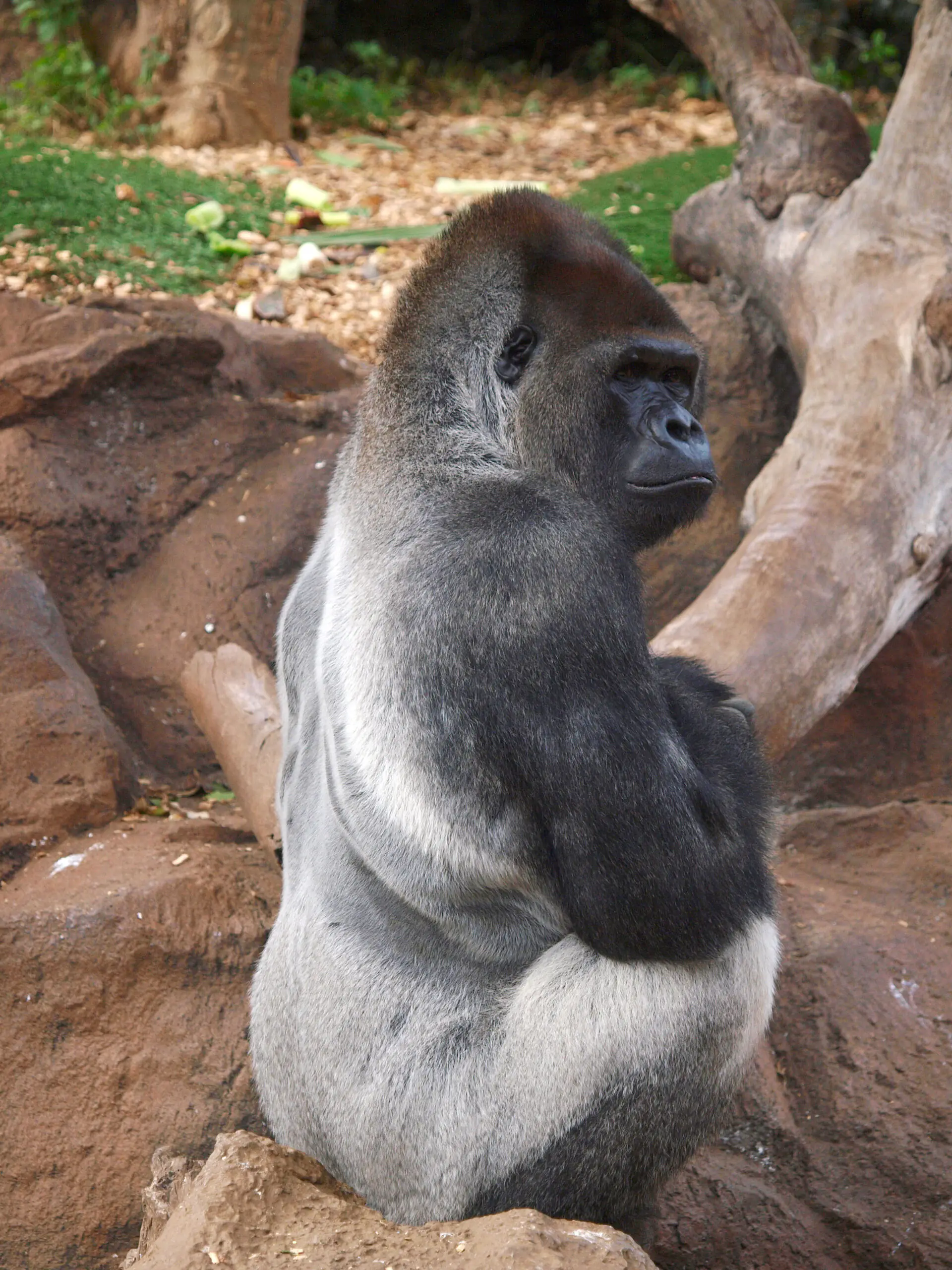 This is exactly what happened to unsuspecting families as they enjoyed a day out before a male gorilla got into an incredibly deep squat that gymnasts would struggle to hold.
