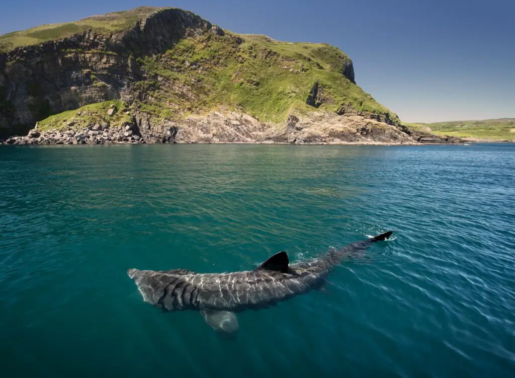 Per Oceana.org, basking sharks pose little threat to humans, as they feed on tiny planktonic prey an have tiny teeth.