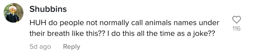 One person confirmed: "HUH do people not normally call animals names under their breath like this?? I do this all the time as a joke??"