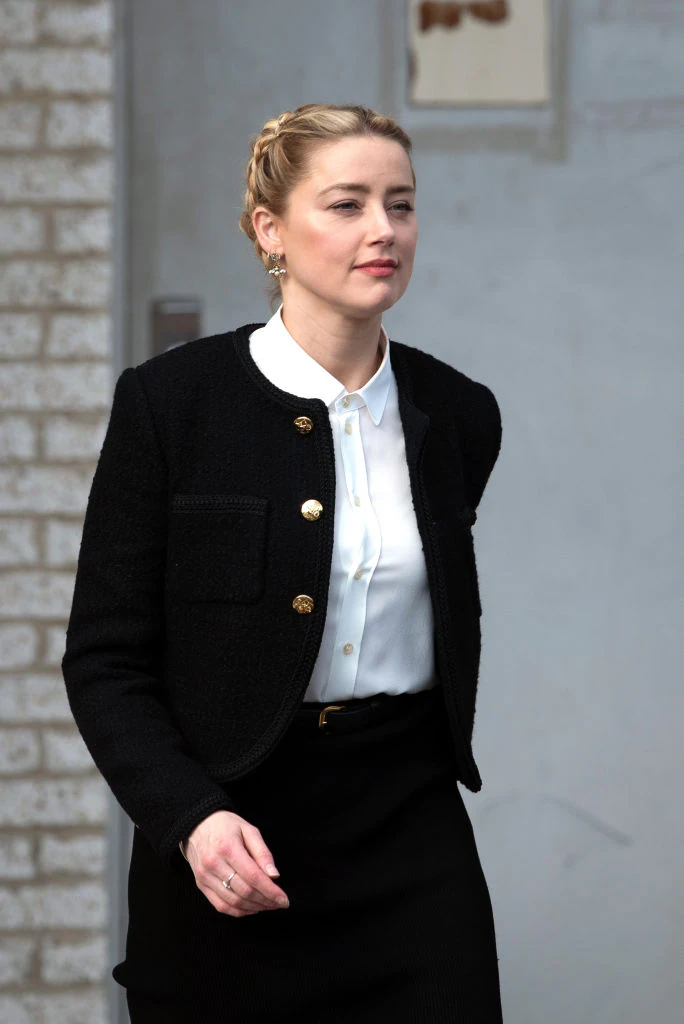 Amber Heard departs outside court during the Johnny Depp and Amber Heard civil trial at Fairfax County Circuit Court in 2022. Credit: Cliff Owen/Consolidated News Pictures/Getty