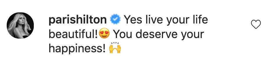 For instance, Paris Hilton wrote: "Yes live your life beautiful! [...] You deserve your happiness!"