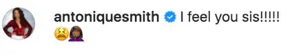 Grammy-nominated singer and actress Antonique Smith chimed in, telling the 'Thru Your Phone' hitmaker, "I feel you sis!!!!! [sic]"
