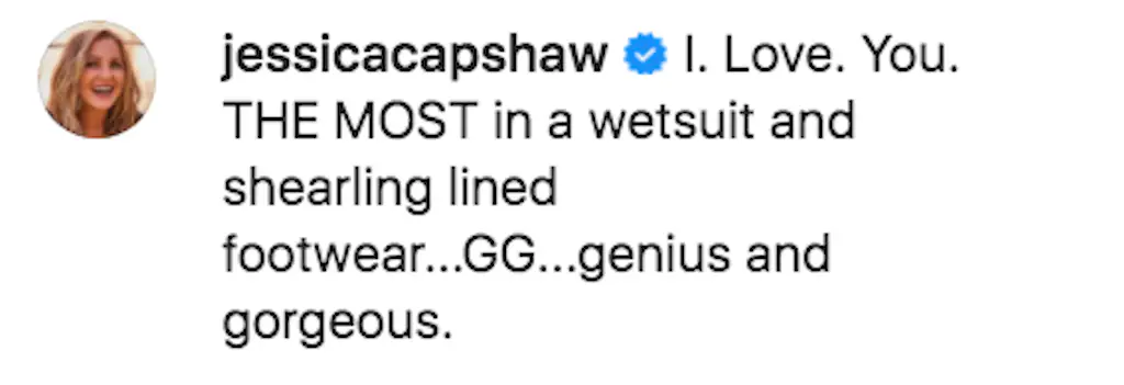 Another added: "I. Love. You. THE MOST in a wetsuit and shearling lined footwear...GG...genius and gorgeous."