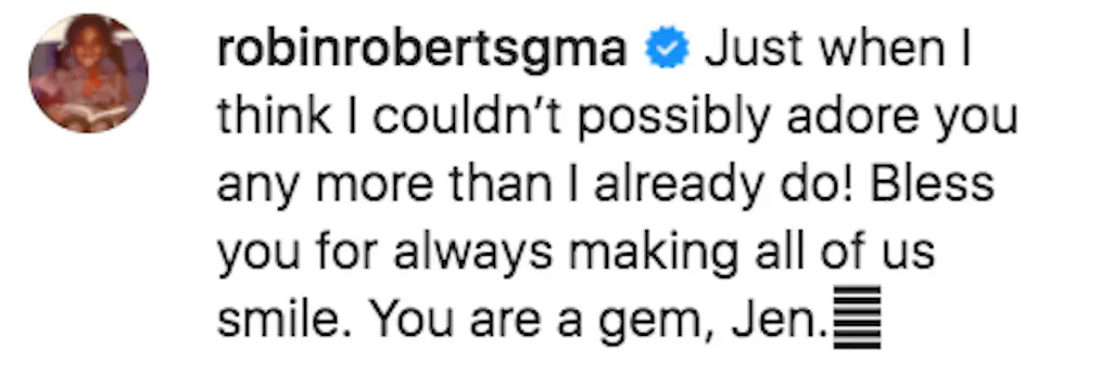 A third wrote: "Just when I think I couldn’t possibly adore you any more than I already do! Bless you for always making all of us smile. You are a gem, Jen."