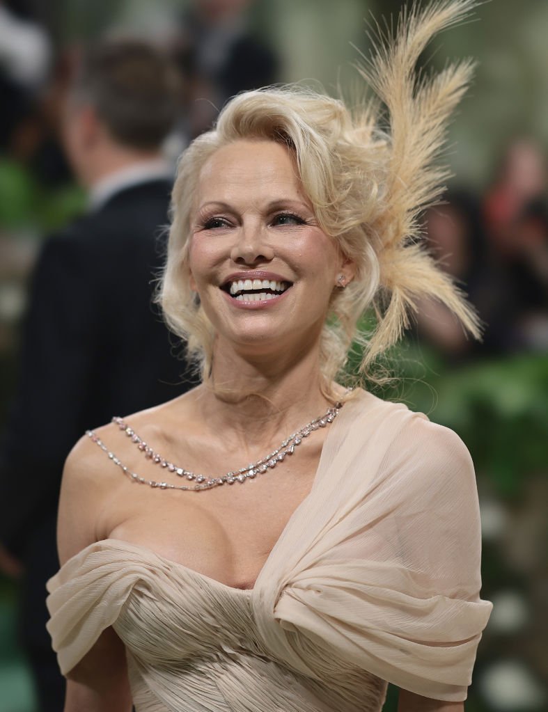 Pamela Anderson wore makeup to the Met Gala on Monday night, marking the first time she's done so since 2023.