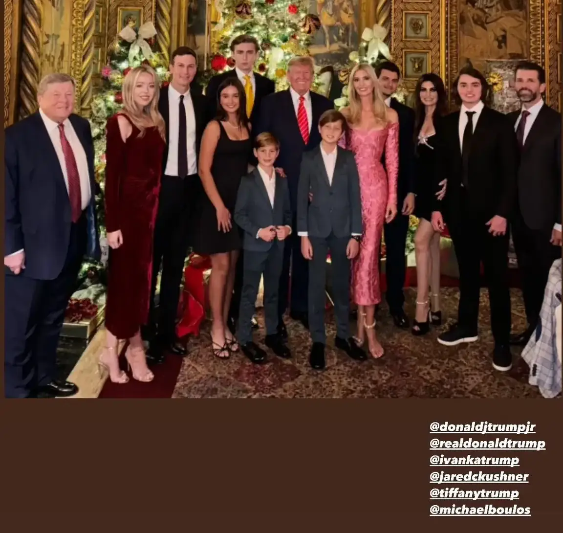 The festive family Christmas photo, which was shared on Kimberly Guilfoyle's Instagram Story, showed the Trump family gathered at Mar-a-Lago to celebrate the holidays.