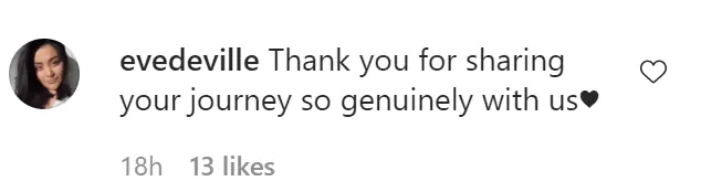For instance, one person wrote: "Thank you for sharing your journey so genuinely with us", while someone else added: "You have worked so incredibly hard and you are absolutely glowing."