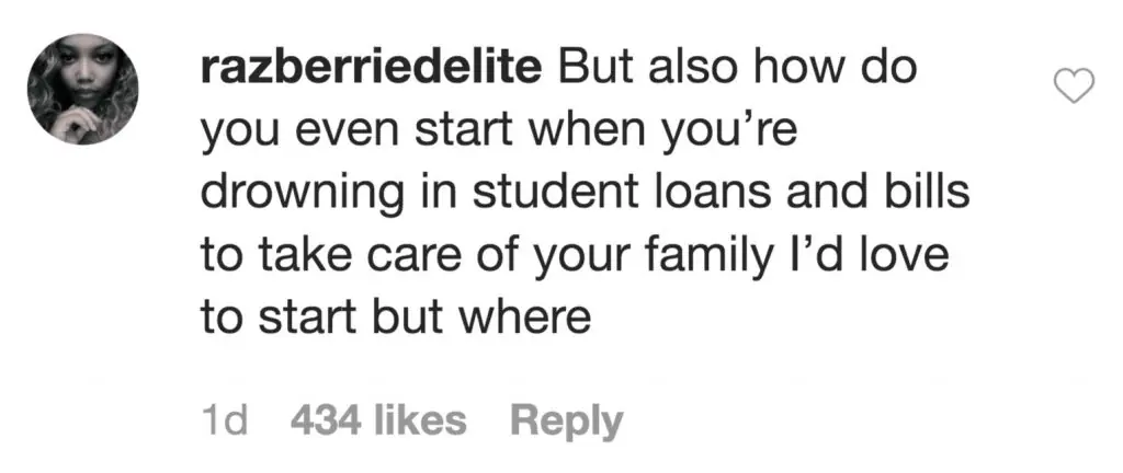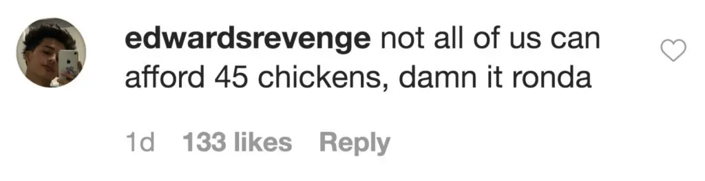 Many people pointed out that Rousey's self-sufficient lifestyle was only achievable as a result of her fortune. Instagram user @razberriedelite wrote: But also how to you even start when you're drowning in student loans and bills to take care of your family".