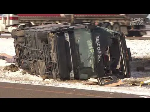 The incident, reported just after 7:00AM, involved a bus that had rolled over on the highway. CBC Saskatchewan obtained footage from the crash site, depicting the overturned bus amidst debris, with snow and ice covering the ground.
