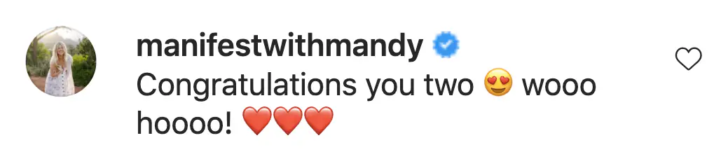 Another commenter added: "Congrats! Here's to wishing you two a lifetime of love and happiness."