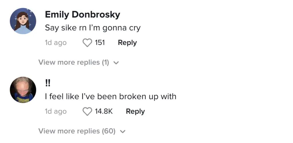 "Say sike rn I'm gonna cry," wrote one user, while another added: "I feel like I've been broken up with."