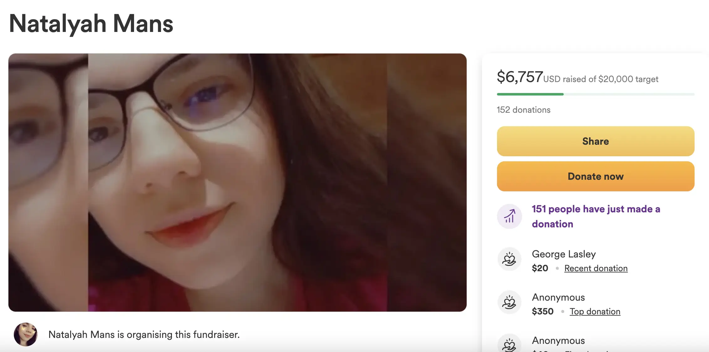In the wake of the controversy, Natalia has started a GoFundMe page where she has revealed that she is saving money for a new house and has career aspirations that she needs help with.