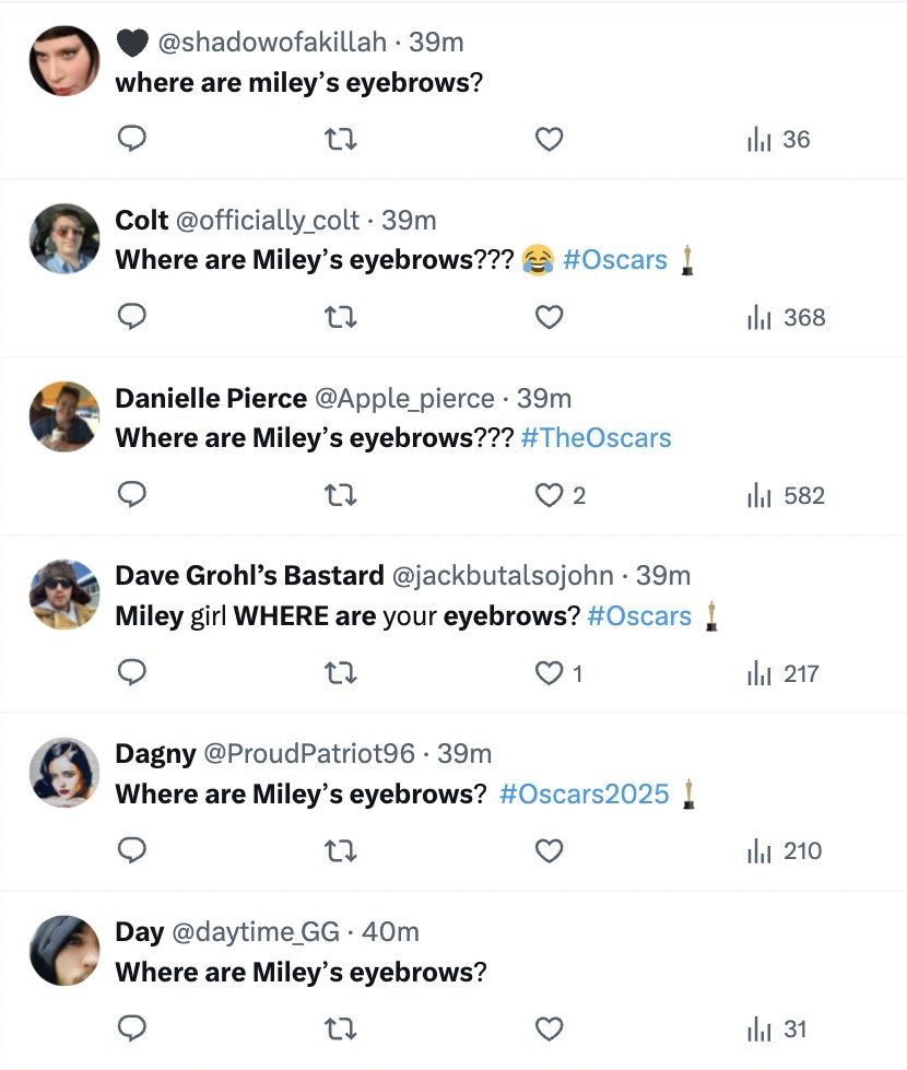 A second said: "I can’t believe someone on Miley Cyrus team saw her eyebrows and was like yeah that’s it looks great."