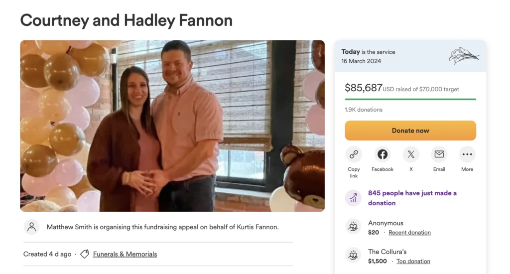 So far, the fundraiser has managed to rack up over $85,600 in the hopes that it can help Kurtis lay his late wife and their child to rest after what was described as an "unexpected turn of events."