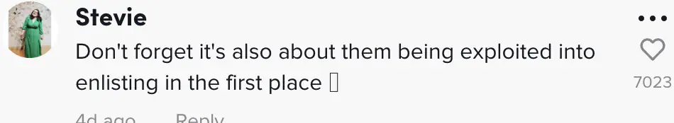 One user wrote: "Don't forget it's also about them being exploited into enlisting in the first place."