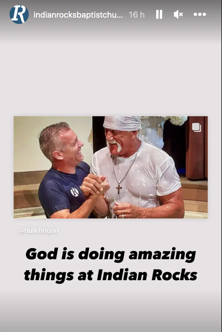 The Indian Rocks Baptist Church also shared the Hogan Knows Best alum’s special moment on its Instagram Story, writing: "God is doing amazing things at Indian Rocks."