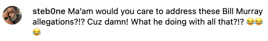 In the comments section, however, one netizen wrote: "Ma'am would you care to address these Bill Murray allegations?!? Cuz damn! What he doing with all that?!? [...]"