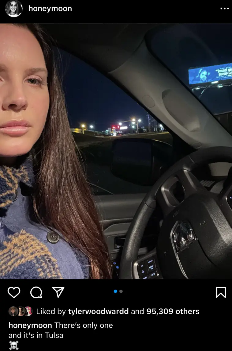 "lana del rey putting up just one billboard for her album in her ex boyfriends city and then posting about it is so lana del rey [sic]," one fan wrote, tweeting the image alongside a photograph of her ex-boyfriend Sean Larkin, who is an officer with the Tulsa Police Department.