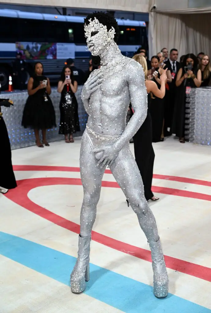 Lil Nas X, one of the many stand-out celebrities that attended the glitzy event, showed us how to steal the spotlight after he stepped on the beige carpet wearing an extremely daring metallic ensemble.
