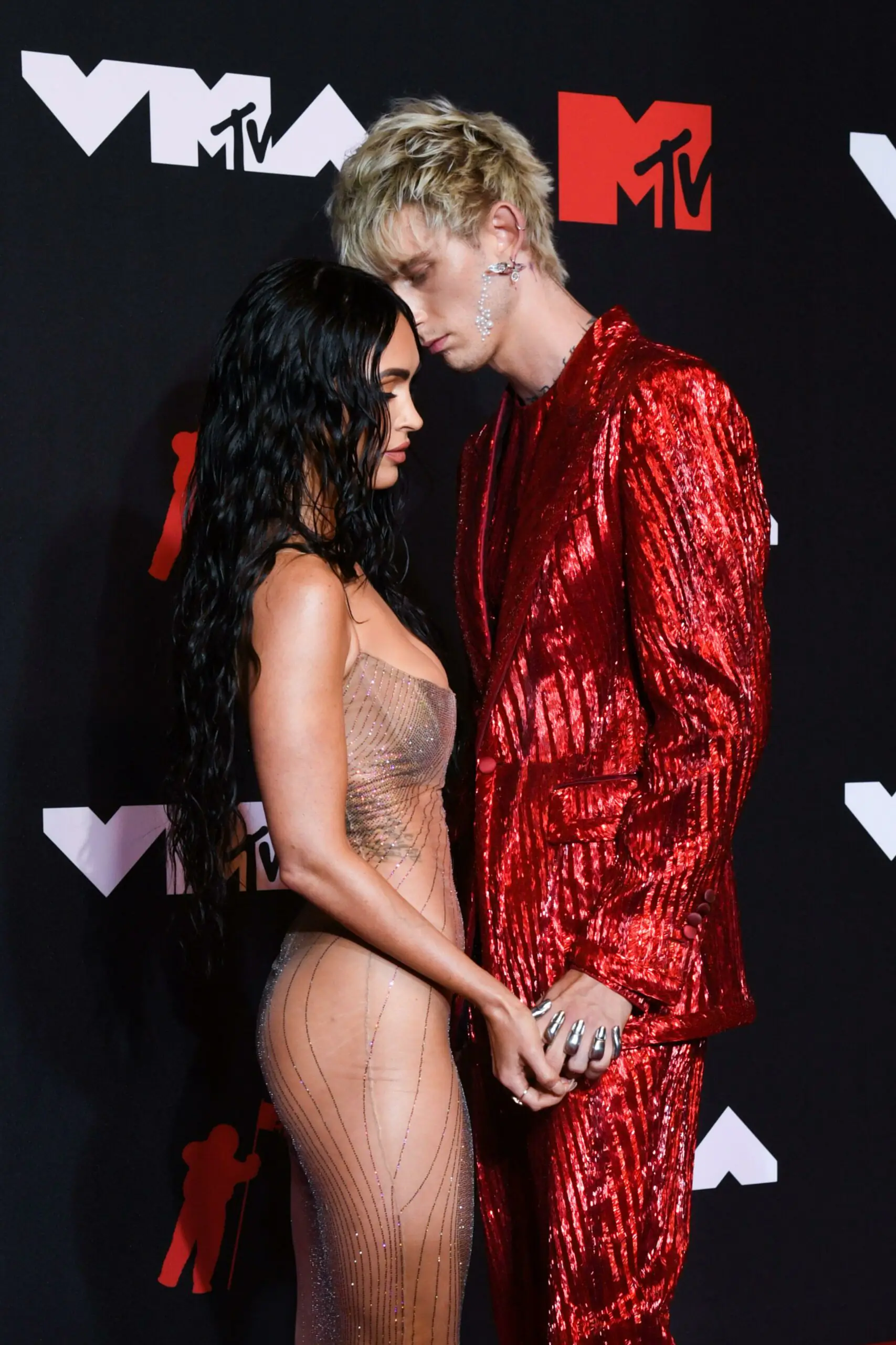 In the second clip, MGK and Fox - who recently got engaged after a year of dating - can be seen going up the escalator.