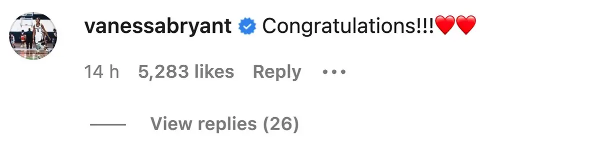 "Congratulations!!!" wrote Vanessa Bryant alongside two heart emojis.