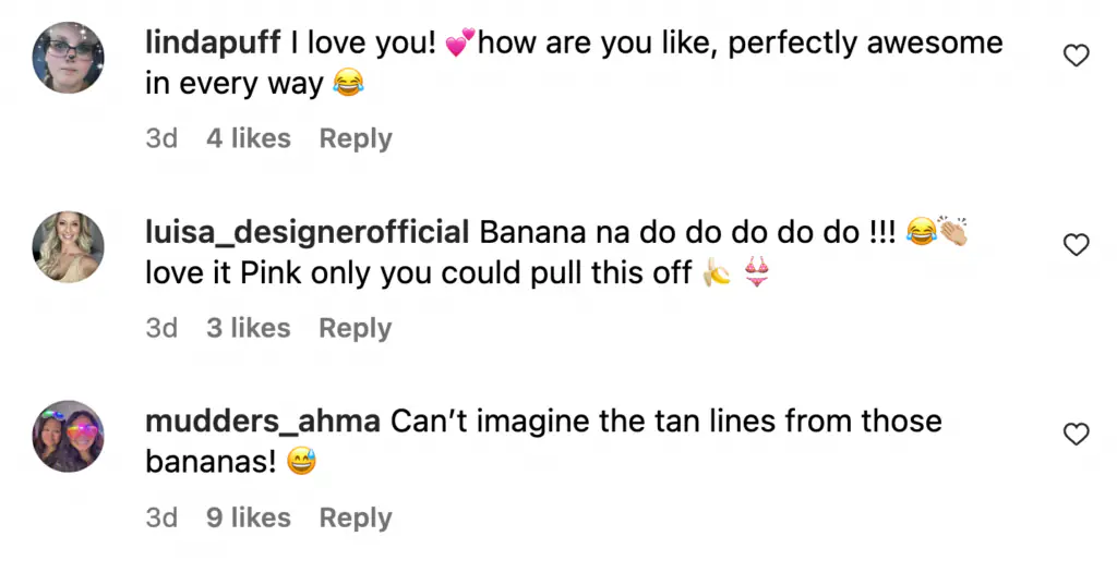 "I love you! How are you like, perfectly awesome in every way," wrote one user while another added: "Banana na do do do do do !!! Love it Pink only you could pull this off."