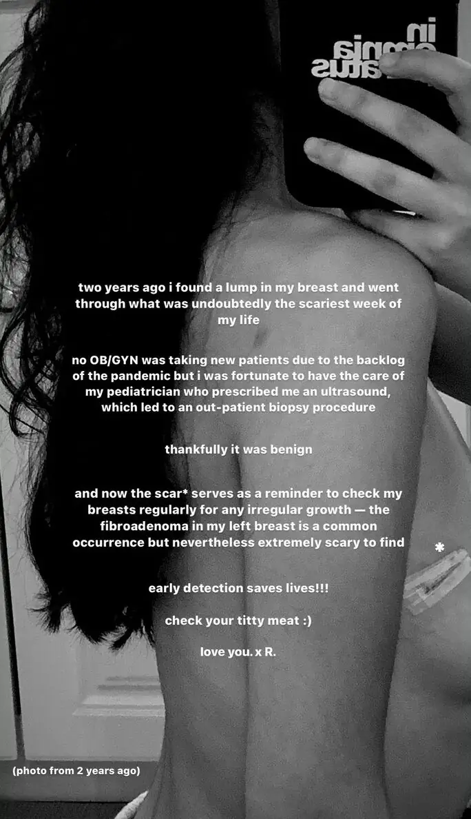 The 21-year-old West Side Story star took her social media to open up about her health and said she found a small lump in one of her breasts during the pandemic's peak when she was 19 years old.