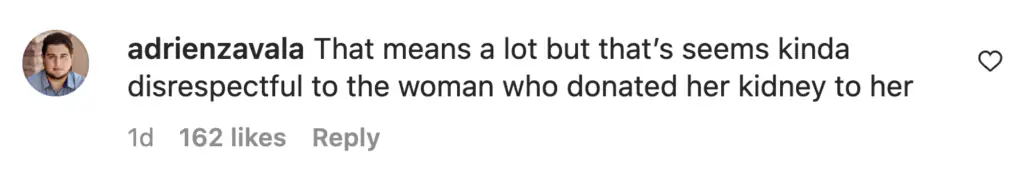 Another added: "That means a lot but that’s seems kinda disrespectful to the woman who donated her kidney to her."