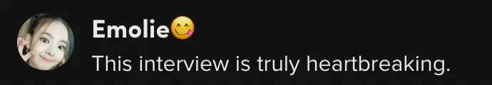 "This interview is truly heartbreaking," someone wrote.