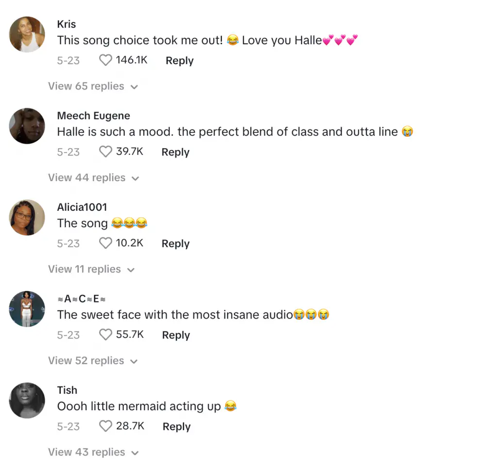 "This song choice took me out! Love you Halle," wrote one user while another added: "Halle is such a mood. the perfect blend of class and outta line."