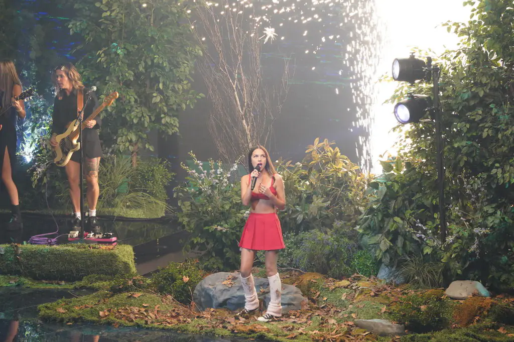 Seconds later, fake trees and a red drape fell from the stage, which led to a "floor manager" rushing over to Rodrigo and quickly ushering her off the stage.
