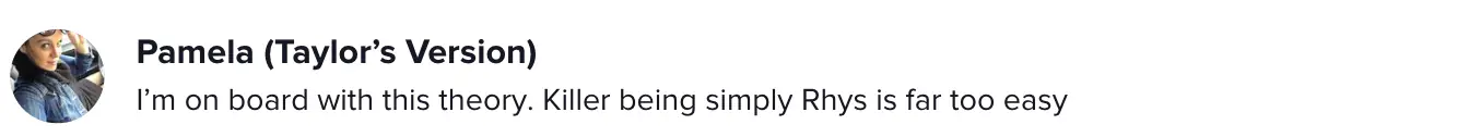 Viewers of the video seem to be in agreement, with one person saying: "I’m on board with this theory. Killer being simply Rhys is far too easy."