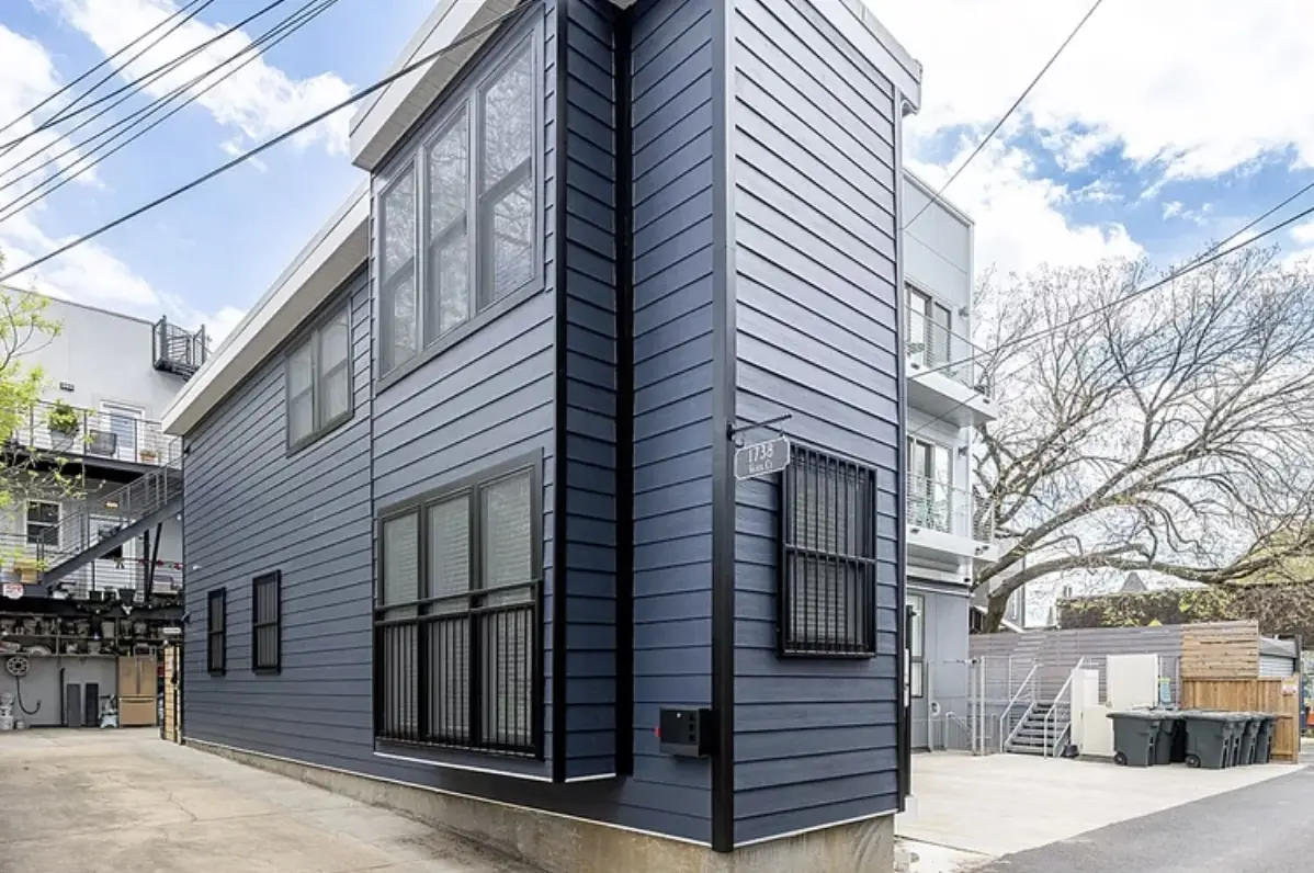 Constructing the narrow home presented numerous challenges. Due to the limited space, heavy equipment couldn't access the property, requiring all materials to be transported by hand. Additionally, only two workers could be on-site at a time.