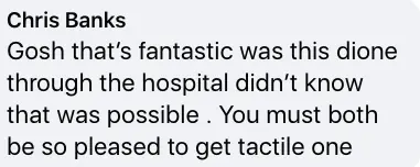 The photo has since received 390 reactions and 80 gushing comments, with one person writing: "Gosh that’s fantastic was this done through the hospital didn’t know that was possible. You must both be so pleased to get a tactile one."