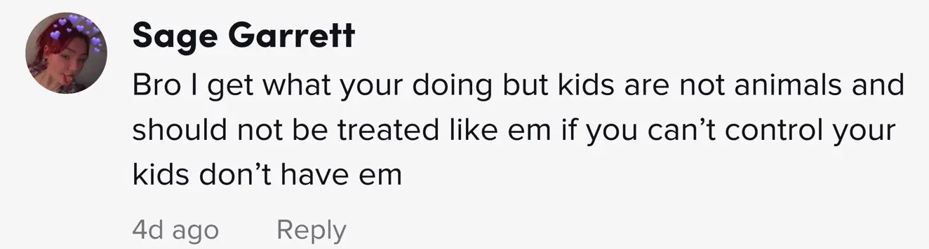 "Bro I get what your doing but kids are not animals and should not be treated like em if you can’t control your kids don’t have em," one person wrote. Another commented: "I totally don't like how to use kids with leaches it's not like they are puppies let them be themselves."