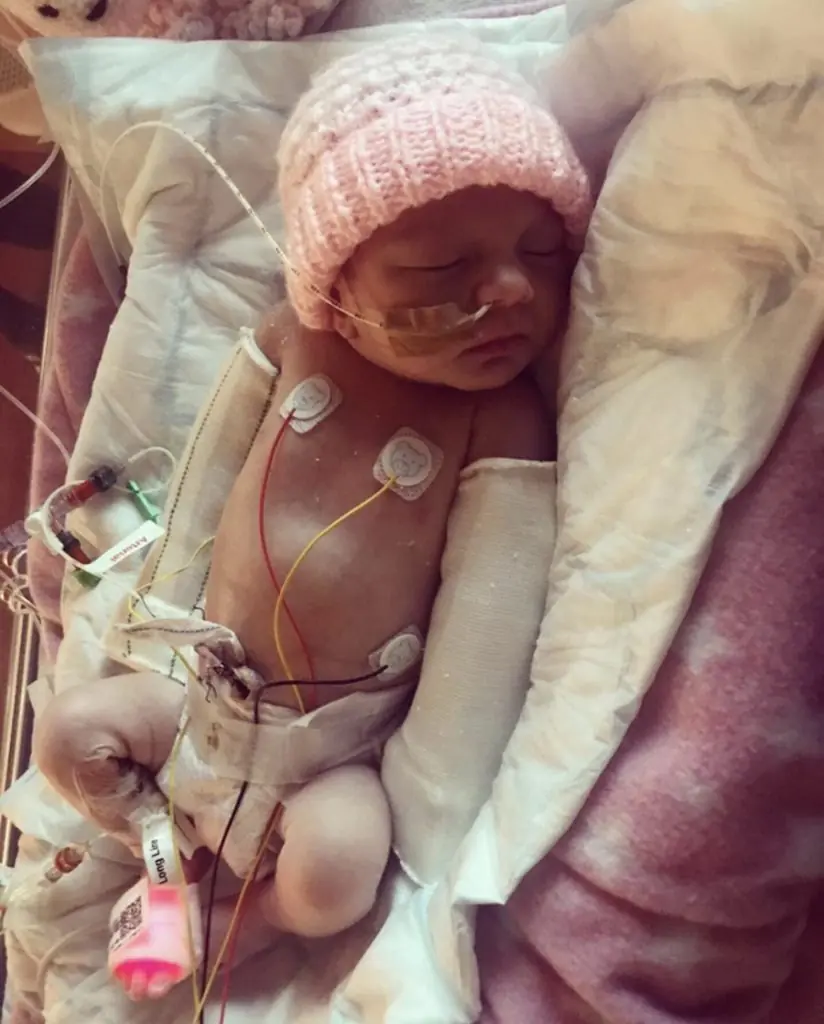 "Darcie was very heavily sedated for the first 10 days of her life, so she was not in pain, but she was in an incubator which made it really difficult because we couldn’t hold her.