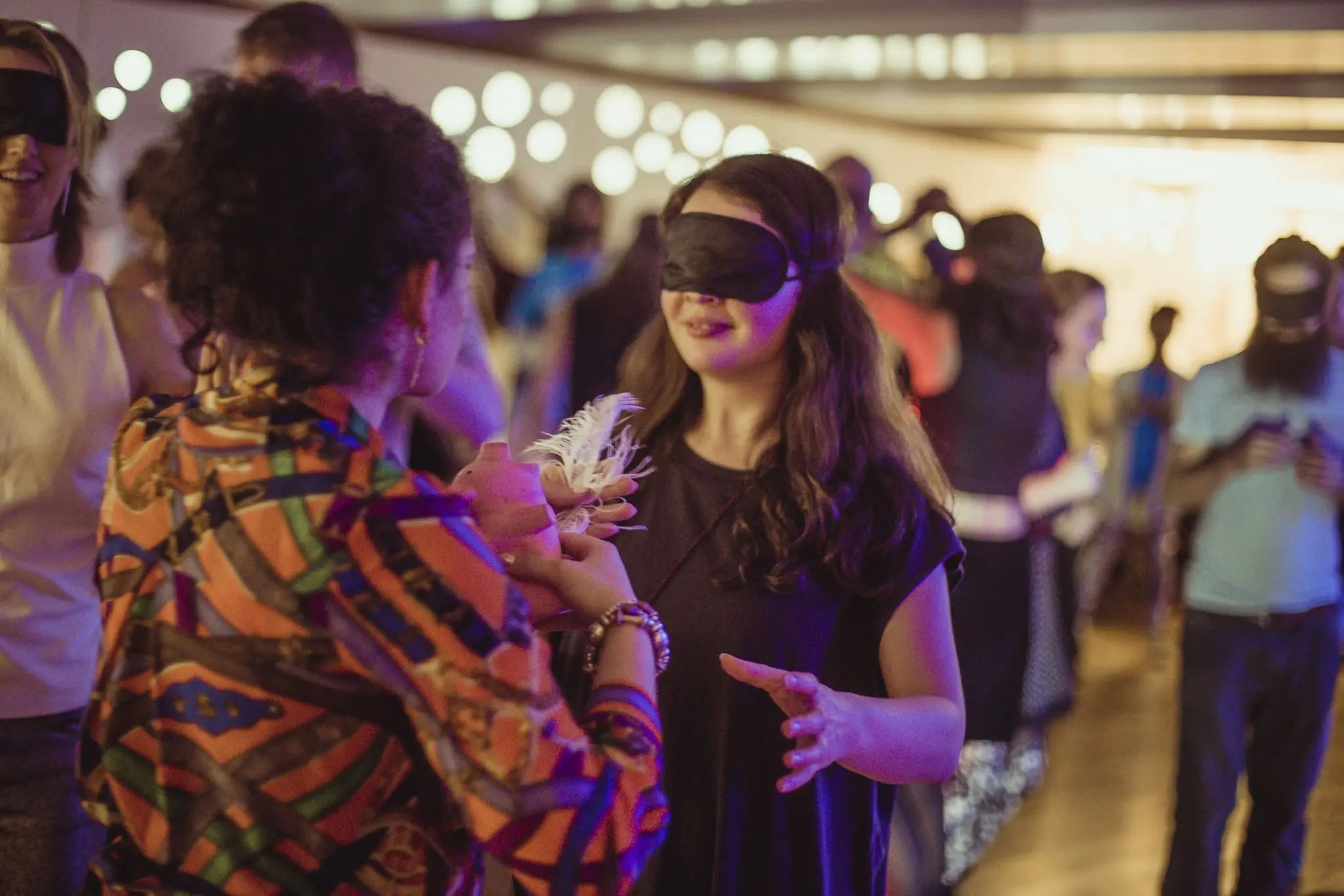Another activity involved touching fingertips with a partner, closing your eyes and slowly dancing around the room. Contrary to traditional ideas around dancing, no one person leads. A carefully crafted equilibrium, it became a rather worrying thought that you might accidentally back into someone and burst your beautiful bubble.