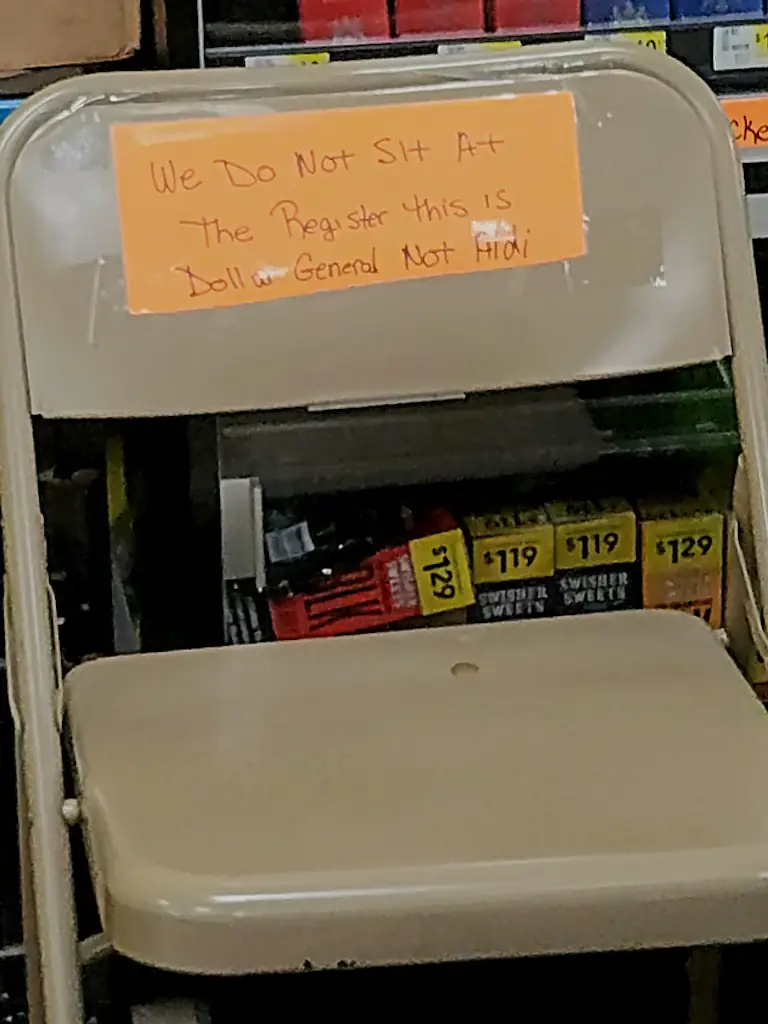 Taking to Reddit, a photo caught the attention of thousands of users after a seat displayed a sign, saying: "We do not sit at the register. This is Dollar General NOT Aldi."