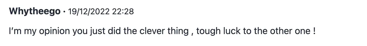 "I'm my opinion you just did the clever thing , tough luck to the other one [sic]!" someone wrote.