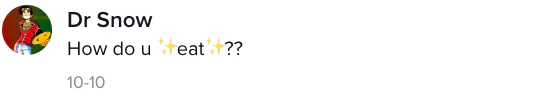 Another person with the username @drsnow02 asked Ramsdell, "How do you eat?"