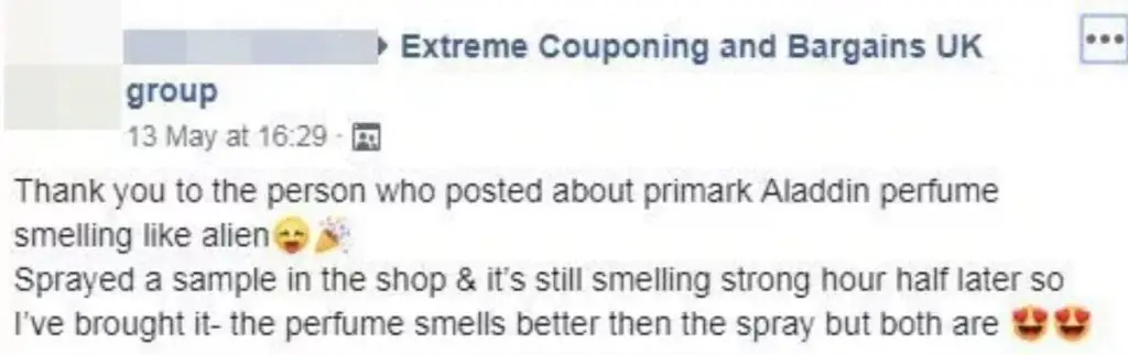 "Thank you to the person who posted about Primark Aladdin perfume smelling like Alien.
