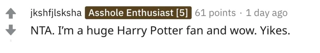 And another wrote: "NTA. I’m a huge Harry Potter fan and wow. Yikes."