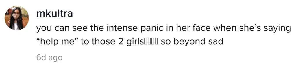 Another TikTokker wrote: "You can see the intense panic in her face when she's saying 'help me' to those 2 girls [...] so beyond sad."