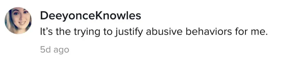 One TikTok user responded, saying: "It's the trying to justify abusive behaviors for me."