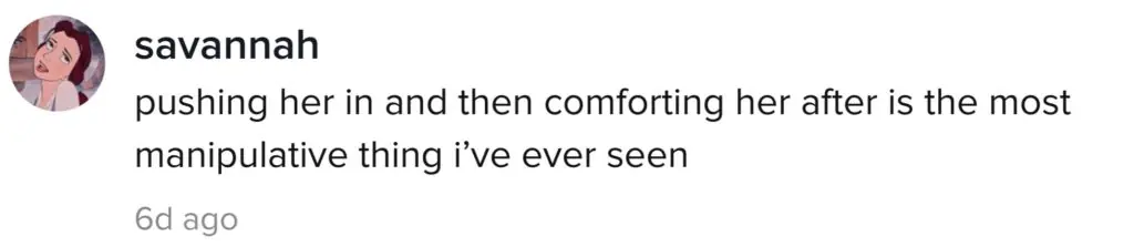One person wrote: "Pushing her in and then comforting her after is the most manipulative thing I've ever seen."