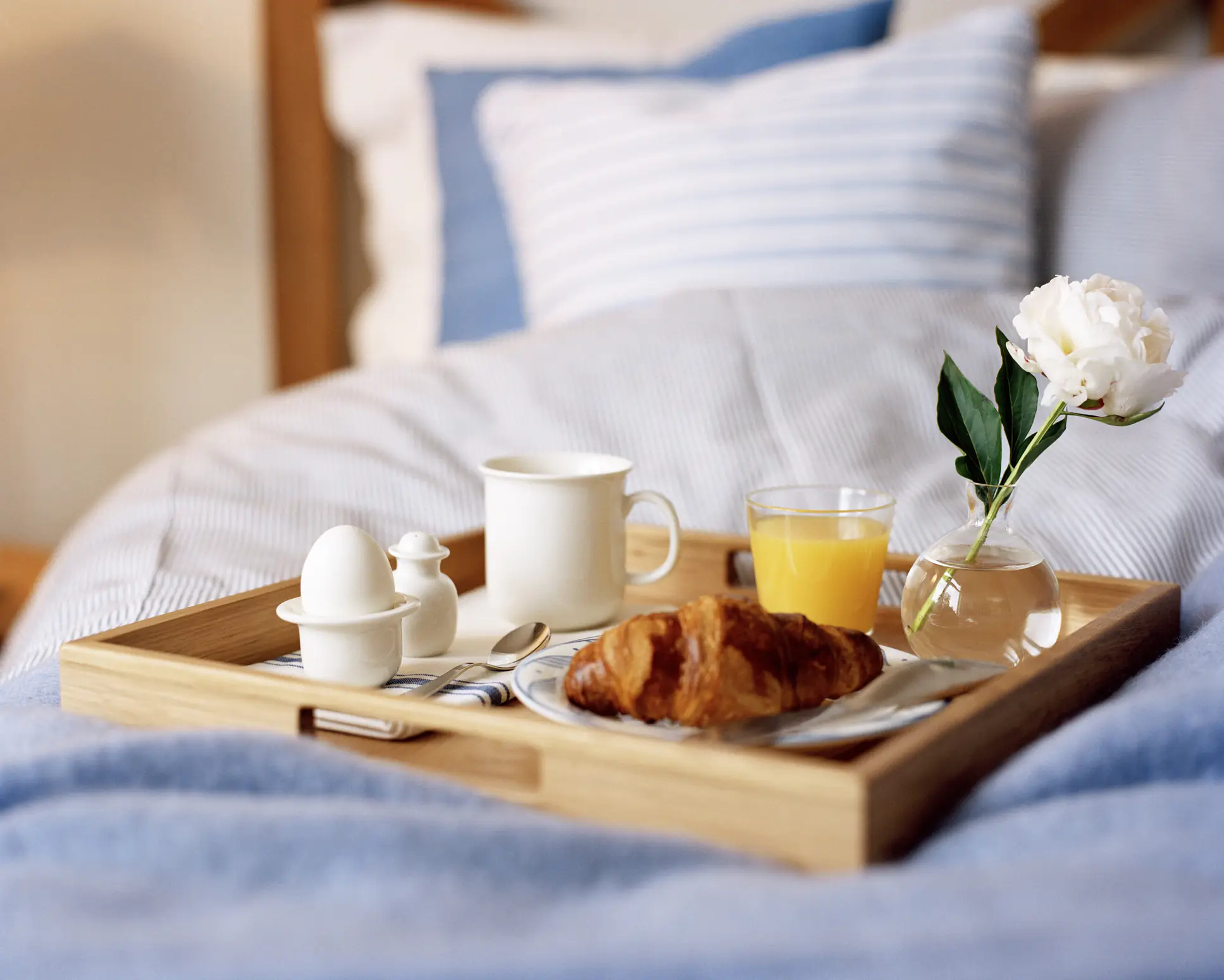 At the end of the video, Brianna handed the tray of nachos to her spouse, who is waiting on the sofa while wrapped up in a blanket.