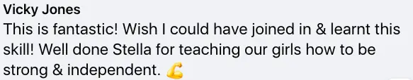"This is fantastic! Wish I could have joined in & learned this skill! Well done Stella for teaching our girls how to be strong & independent."