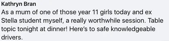 Another added: "As a mum of one of those year 11 girls today and ex Stella student myself, a really worthwhile session. Table topic tonight at dinner! Here’s to safe knowledgeable drivers."