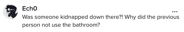 A different person speculated: "Was someone kidnapped down there?! Why did the previous person not use the bathroom?"