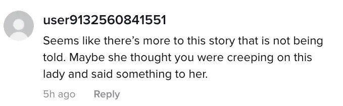 Many defended the woman, with one user saying: "Seems like there's more to this story that is not being told. Maybe she thought you were creeping on this lady and said something to her."